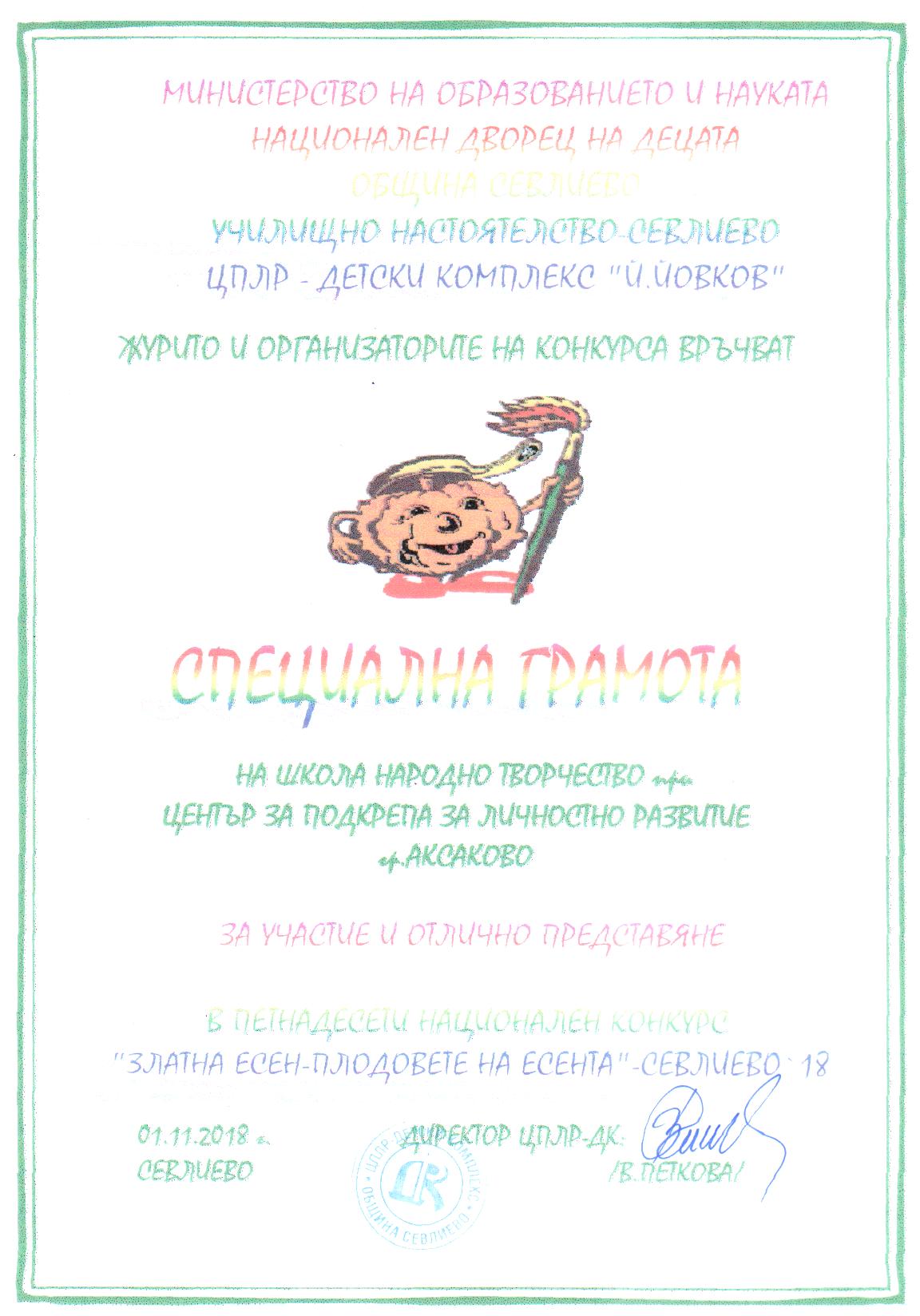 Национален конкурс "Златна есен -плодовете на есента"-Севлиево 2018