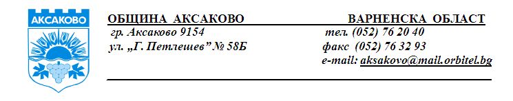 Съобщение за XХХV-та сесия на Общински съвет – Аксаково